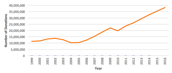 With two donations a week that comes to around 160-400 per month. With two donations a week that comes to around 160-400 per month. They also have promotions and other payments that you can use to increase your potential income.